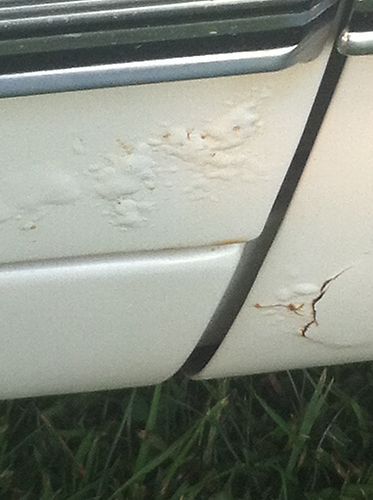 I BELIEVE THE CAR HAS THE ORIGINAL PAINT , IT IS DRIVER QUALITY , BUT LOOKS GOOD FROM 10 FEET. BODY IS VERY GOOD BUT DOES HAVE SOME BUBBLES BUT NO RUST COMING THOUGH.( LOOK AT THE PICTURES ) AT ONE TIME IT HAD A CARB FIRE SO THE HOOD DOES NEED PAINT ( FORMER OWNER )