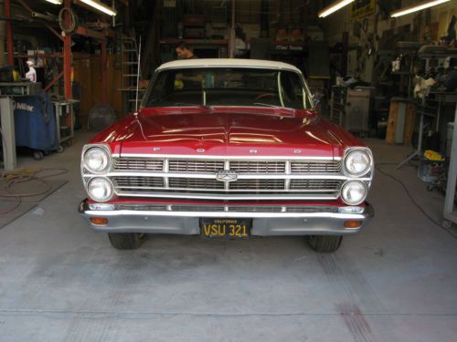 Rare 1967 Ford Fairlane two door hard top original 35,000 miles California black plates, original paint, interior, 390 V8 automatic transmission, air conditioning. radio, heater. This car was purchased new in Southern California and has been stored in a sealed garage over 30 years. Original paint has a worn patina look and interior is very nice. All glass is original Ford Carlite and in perfect condition. Left quarter is scratched from the owners wife getting too close to a chain fence. He is still mad at her. One small dent in hood which you can see in the photo. We installed a new battery, fuel pump and the jewel started right up. The brakes were replaced many years ago, but should be inspected as well as the mechanics. The vinyl top is like new. The 390 motor has all the original smog controls, air cleaner, and firewall and core support have factory chalk marks. The car has no rust any ware and all original trim is in good condition. The motor and transmission is original to the car. The trunk has all the factory instructions and jack. The car also has the owners manual included. This car is for sale locally and I reserve the right to end the auction early. You may call me with any questions you may have. Ed 909 721 0030