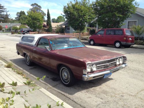 1968 ford ranchero. Has 302, power steering, power brakes, dealer installed under dash A/C (blower works, but makes a racket, compressor is there and is not frozen). This car was my daily driver, till I started to take the interior apart and get the car ready for paint. To get it driver worthy I installed all new front brakes including; drums, lug studs, bearings, wheel cylinders, hardware, flex hoses, shoes and master cylinder. New monroe air shock were added to the rear. Engine starts up every time, and runs good, but blows some blue smoke on start up, transmission shifts great. Body is very solid, minimal rust, but has an old repair on the passenger quarter panel, panel is solid, but need to be reworked. Needs floor pans, no huge holes, but it needs them.Basically, don't have time for this project, but i do have about 90% of new interior parts that will come with it, only things that are missing are new door panels, and the bench seat needs to be recovered. Car can be a driver again with minimal work, it drove fine until i parked it for restoring. Shell is included in the sale. Thanks for looking and good luck!