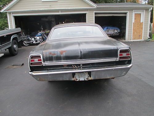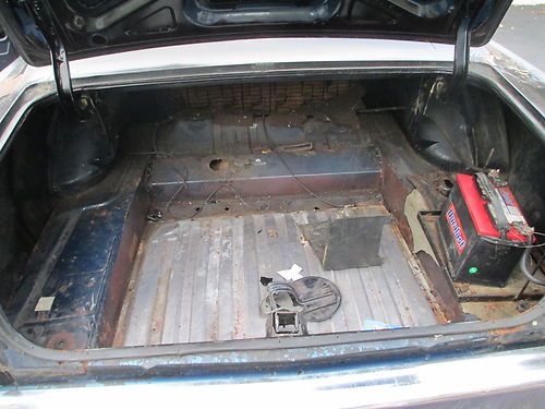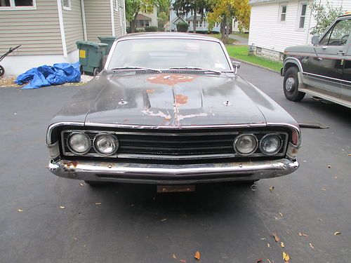 HERE IS A 1969 FORD FAIRLANE FORMAL ROOF "Q" CODE 4 SPEED 428 ROLLING CHASSIS FOR SALE. CAR HAS STAGGARD SHOCKS. THIS WAS SITTING IN A BARN FOR 30 YEARS OR SO. THIS CAR DOES NOT COME WITH A MOTOR, TRANSMISSION OR CENTER SECTION FROM THE REAR END. THE CAR DOES COME WITH AXLES AND WILL ROLL. THE MOTOR THAT IS IN THE CAR NOW WILL BE PULLED AFTER THE AUCTIONS END. THE CAR WAS ORIGINALLY BLUE BUT WAS PAINTED BLACK BACK IN THE 70'S. THE PAINT IS PEELING AND MISSING IN SOME SPOTS. THE INTERIOR IS IN DECENT SHAPE WITH NO RIPS BUT IT IS DIRTY. THE BODY IS IN PRETTY GOOD SHAPE. FRONT FENDERS AND DOORS ARE VERY NICE. THE HOOD CAUGHT FIRE AT SOME POINT AND SHOULD BE REPLACED. THE TRUNK LID HAS RUST ON THE INNER LIP AND SOME FIBERGLASS IN IT SO THAT TO SHOULD BE REPLACED. THERE IS RUST IN BOTH LOWER QUARTER PANELS (SEE PICS). THE PASSENGER SIDE QUARTER PANEL HAD DAMAGE AT SOME POINT AND HAS FIBERGLASS IN IT. lOOKS LIKE IT HAS SOME DAMAGE FROM A FENDER BENDER. THE FLOORS ARE VERY SOLID BUT THERE ARE 2 SPOTS THAT NEED REPAIR (SEE PICS). ON BOTH SIDES OF THE CAR IN THE VERY FRONT (AROUND WHERE YOUR TOES WOULD BE) THE FLOORS NEED TO BE REPAIRED. THE PASSENGER SIDE HAS A HOLE THERE NOW. THE DRIVERS SIDE IS WEAK THERE AND YOU CAN PUSH ON IT. BOTH SPOTS ARE 12 INCHES BY 12 INCHES WHERE IT NEEDS TO BE REPLACED. THE REST OF THE FLOOR IS SOLID WITH JUST SOME SCALE ON IT. CAR IS A VERY GOOD PROJECT FOR RESTORATION. THE BUYER IS RESPONSIBLE FOR PICKING THE CAR UP. ANY QUESTIONS FELL FREE TO CALL OR EMAIL ME. 585-254-1537. AGAIN, ROLLING CHASSIS, NO MOTOR, TRANSMISSION OR THIRD MEMBER. If you want more pictures please call. I can give you detailed pictures of whatever you want. Ebay would only let me put 24 pictures on here. DATA PLATE INFO: BODY 65E, COLOR X, TRIM CB, DATE 30K, DSO 37, AXLE S, TRANS 6 |
