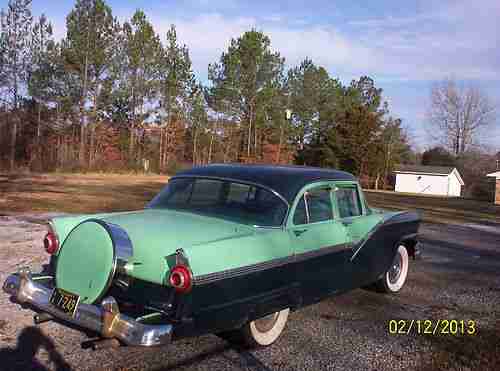 56 fairlane town sedan,solid southern car,312 engine runs good,auto,power steering, has some play in steering. dual exhaust, left side has minor gasket leak.trans.& rear end good. repainted many years ago and needs new paint. no rust, original floor pans.seats & door panels good, needs headliner.tires stay up but are old.would not trust them very far or very fast.clear title in my name. cash only at time of pickup or after check has cleared reserve is 5.300.oo questions call 662-837-2449 before 10 PM CST.may cancell early is for sale locally. you can see extras skirts,cont kit,door visors. all new brakes,hoses ,carb rebuilt, no parts missing. drive as is or restore.