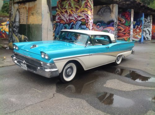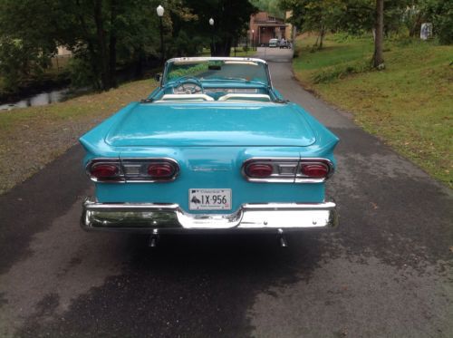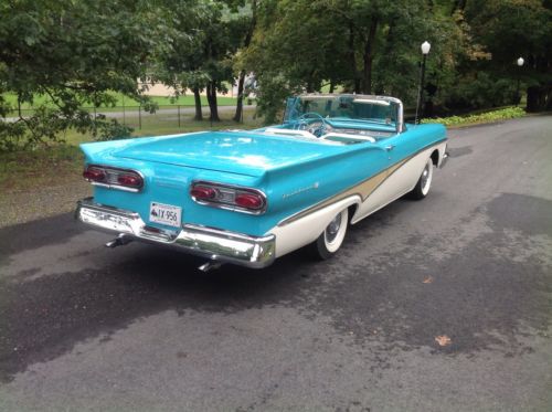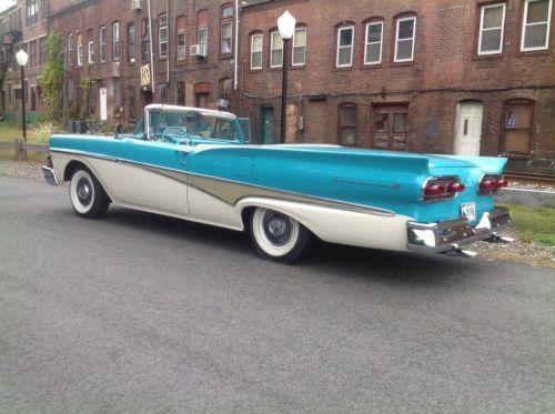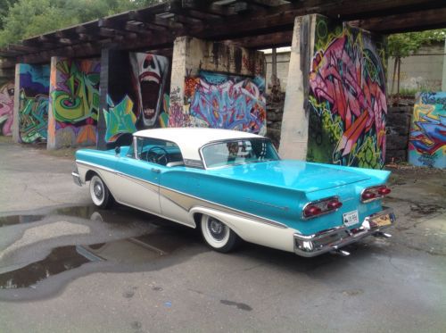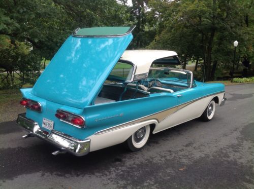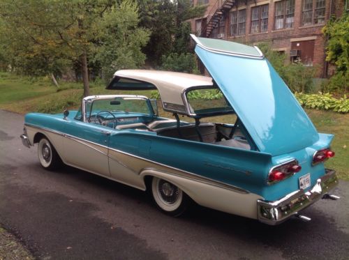 1958 Ford Skyliner retractable hardtop. One of the most solid rust free cars I have seen. Looks like it may have been in Virginia for good portion of its life. Car was repainted sometime in the 90s paint shows very well chrome and stainless also in good shape. Recent replaced wheel cylinders, master cylinder, rubber lines, and rebuilt carburetor. Top functions as it should does need to be on level ground. I believe the interior to be original. Looks to be a well preserved original car with one repaint. Radio and clock are not working. Please ask all questions prior to placing a bid thank you. Car Is located in Connecticut 06076 860-250-9281