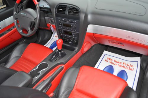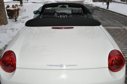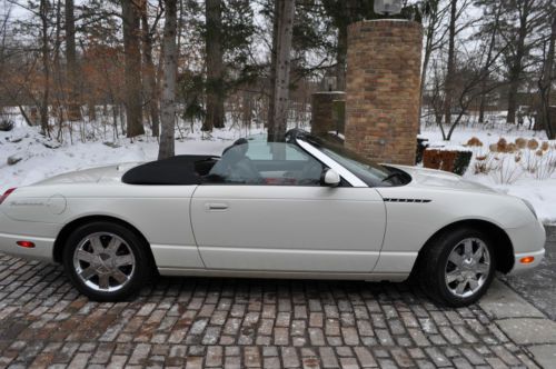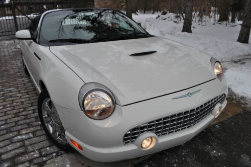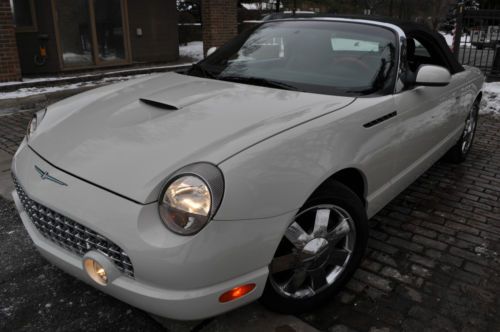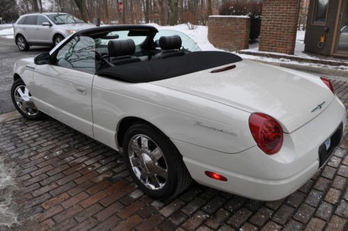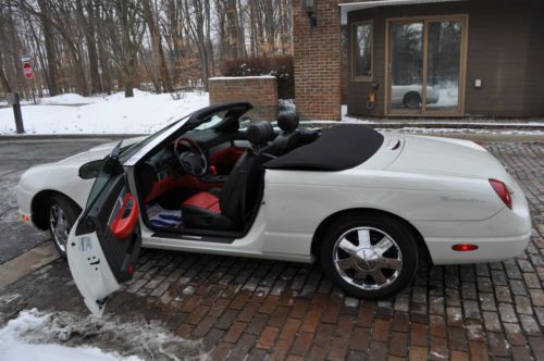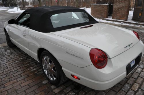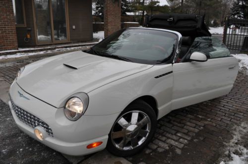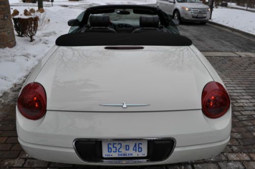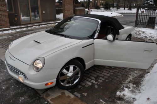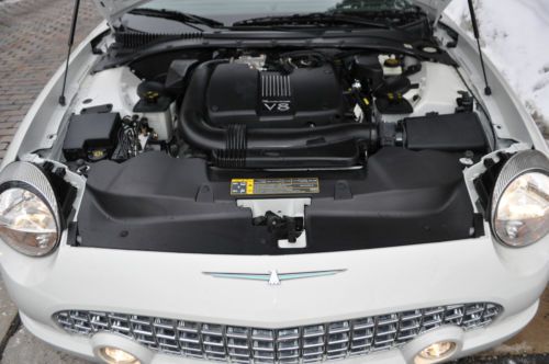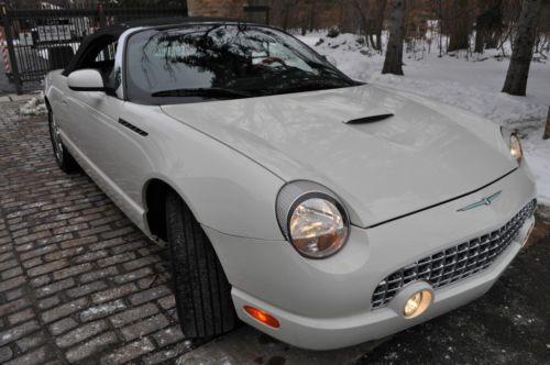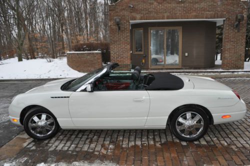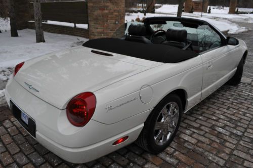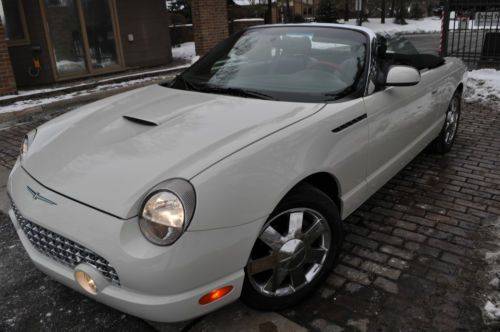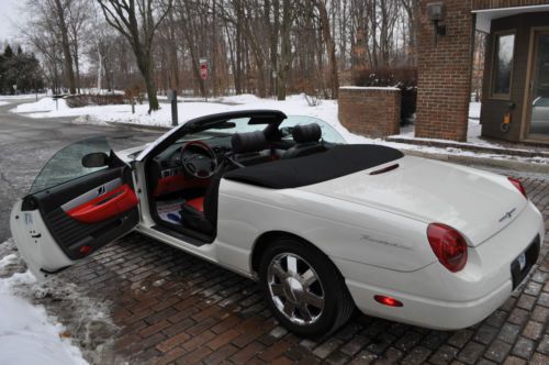 You are viewing a super sharp and RARE Diamond white matched with a black/red insert leather interior 2002 FORD THUNDERBIRD roadster in MINT condition............................Only 27,851 miles---Hardly driven since day 1 and always garaged................1 Owner vehicle.........3.9 Liter V8 double over head cam 32 valve 252 horsepower rated at 6100 rpms........................Short and lock arm front suspension links.......Torsion Beam vehicle suspension..................Gorgeous 2 tone black/red leather seating surfaces in tip top shape...........6 way power drivers seat with height adjustment as well as lumbar support.................Power convertible soft top in great shape...................Wood grain steering wheel in a 2 wheel color combination as well............ Passenger airbag de activation switch ............POWER Tilting and telescoping steering wheel................Dual zone climate controls..................Am/fm/cd in dash Cd element antenna.........Cruise control...............Rear defrost...................4 Wheel ABS......................Remote anti-theft alarm system....................Electronic brake force distribution and so much more!!!!!!! 100% CLEAN & CLEAR TITLE THIS IS A NO RESERVE AUCTION WHICH MEANS HIGHEST BIDDER TAKES THIS GORGEOUS/SUPER LOW MILES FORD THUNDERBIRD CONVERTIBLE HOME!!! Auto check shows a minor fender bender a couple of months back............We simply replaced the right fender and front bumper and hood for a superb job done...Once again, simply cosmetic damage that was perfected and will come with a 100% Clear title...... Feel free to call with any questions 248-255-1164 (Michael) Will ship your vehicle to your desired destination anywhere in the states at dealer discounted hauler/freight services. Areas are as follows which include neighboring/surrounding states as well. N.Y area- $400 Florida area- $600 Texas area- $700 California area- $950 Note: Please note that when bidding over $25,000 on any vehicle, ebay will need to verify your info so do not wait until the last minute to place your bid as it could lock you out of the bidding process as verification could take up to 2 minutes, thanks. |