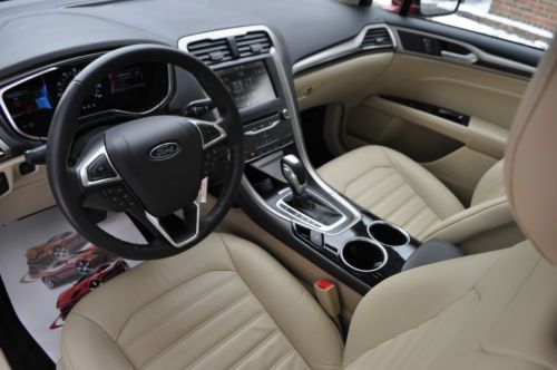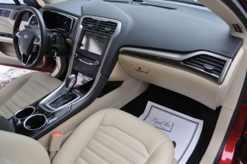 Just in on a fresh trade in!!!!!................You are viewing a super super gorgeous VIBRANT METALLIC LAVE RED /TAN LEATHER 2013 FORD FUSION SE in MINT CONDITION .............Loaded!!!!...............1.6 L Turbo powered ECOBOOST engine in superb condition and cranks out amazing power for a 4 cylinder--This engine is the superior model ........ONLY 192,96 miles..................6 speed automatic transmission that shifts perfectly with an option for a manual gearbox.........GORGEOUS TAN leather seats in impeccable new condition.......Am/Fm/Xm/Cd which is filtered through a premium 12 speaker audio system...............................VOICE ACTIVATED NAVIGATION SYSTEM FOR GO ANYWHERE DIRECTIONS DISPLAYED ON A GORGEOUS 8 INCH MEDIA SCREEN WITH MAP DISPLAY FOR SUPER ACCURATE DRIVING............................... ALSO PLAYS MP3'S/REWINDS LIVE MUSIC/PAUSES LIVE RADIO AND IS QUITE POSSIBLY THE MOST ADVANCED MEDIA SCREEN SYSTEM OUT THERE IN THE COUNTRY AND IS LINKED TO FORD-MY TOUCH WHICH ALLOWS YOU TO SET PARENTAL CONTROLS ON EVERYTHING FROM STEREO VOLUME TO THE SPEED WHICH THE VEHICLE IS TO BE DRIVEN AT--ALSO LETS YOU DE-ACTIVATE RADIO AND SOUND IF SEAT BELTS ARE NOT FASTENED (THIS IS A VERY VALUABLE OPTION AND SHOWS WHY FORD MOTOR CO. IS CURRENTLY LEADING THE AUTO INDUSTRY IN TECHNOLOGY AND INNOVATION.............Cruise Control..........Wood grain trim matched with a flat black trim...........................Rear spoiler............Vehicle stability control...............DUAL power HEATED seats in superb shape..........Key less entry door combination which is conveniently located on your B pillar and illuminates at night when walking up to the vehicle...............Puddle lamps.........................Chrome accented mirrors............19" FACTORY MATTE GRAY POWDER COATED WHEELS MATCHED WITH PREMIUM TIRES FOR MAXIMUM PERFORMANCE......Dual power heated mirrors.....Reverse back up sensors which sound off an alarm when backing up to an object for greater safety throughout...........REAR BACK UP CAMERA which displays live video feed of rear while vehicle is in reverse mode.....Dual airbag restraint system..........LED PARK LAMPS........... and so much more!...........This vehicle runs and drives absolutely beautiful and is one of the finest luxury appointed family vehicles out there........The 2013 Ford fusion is one of very few family luxury vehicles that can be had for under $31,000 dollars and this one is no exception....GORGEOUS GORGEOUS setup on this Turbo charged fusion. This is a NO RESERVE auction which pretty much means highest bidder takes this beauty home! ADDED BONUS: This vehicle listing includes a FREE history check provided by AUTOCHECK to better serve our customers by elaborating further on the vehicle's history in detail and is absolutley FREE of charge to you. Vehicle will come with the balance of the following factory warranties. 3 YEAR/36,000 MILE bumper to bumper warranty. 5 YEAR 60,000 MILE Power train warranty. Feel free to call with any questions 248-255-1164 (Michael) Will ship your vehicle to your desired destination anywhere in the states at dealer discounted hauler/freight services. Areas are as follows which include neighboring/surrounding states as well. N.Y area- $400 Florida area- $600 Texas area- $700 California area- $950 Note: Please note that when bidding over $25,000 on any vehicle, ebay will need to verify your info so do not wait until the last minute to place your bid as it could lock you out of the bidding process as verification could take up to 2 minutes, thanks. |