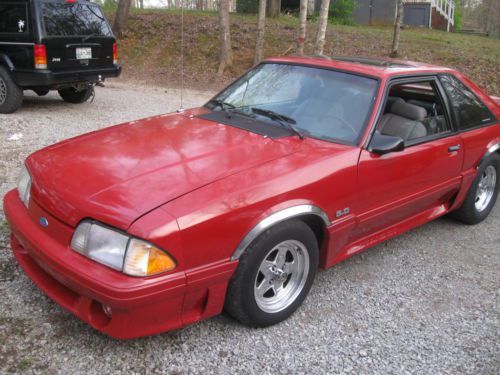 1989 mustang gt 5.0 automatic has mild cam shift kit sun roof doesn't leak 164000 miles new rear tires good front tires fast car drive any where not a show car but looks good straight body sony cd player good interior gray no cats no oxygen sensors check engine light is on for that reason sounds good if i get around to it i will put the 02 sensord in the pipes someone removed the exhaust and redid it without them not me all guages work good windows work good power locks do not work cruise woks good tilt wipers work heater works very good new heater core no ac is on the car and smog pump doesnt have the belt on it it has a custom belt system ran only around the alt water pump and power stering and crank gives it more power i guess it worls well that way all the lights blinkers everything works even the hatch has new shocks and stays up i have an open title to the car that is clean no signs of damage to car ever the paint looks original best i can tell it hasnt been painted the guy i got t from got a jaquar and let it sit never drove it but once in awhile he needed money to fix that car and sold it to me he had it for the last 5 years ive known him finally i got it so i could play with it get a home that appriciates it i put new plugs in it set the timming cleaned the iac motor set the tps and put hightest in it with stp fuel injector cleaner and runs like a scalded dog now shifts perfect he said he had the trans has a shift kit in it it shifts pretty smooth into every gear as it should when it should brakes work good its a good daily driver race car show car turns heads everywhere i go i have been driving it everywhere and will continue till i sell it i live close to nashville tn and chattanooga on 70 miles from either one in middle tn its on craigslist also so it might sell fast please please dont buy teenaers fast cars like this i will not sell it to you if i know its for a young man or woman its to fast i wouldnt sell it but its what i do for a living is save them and send them on to the next person 3500 is cheap for a fox body with paint and a litle work its a 8000 dollar car all day you are looking at i have been offered some good trades but i dont like to trade it doesnt pay the bills but i would trade for a nice truck not a junk 1 must be worth 4000 dollars or more find me on facebook koolautos or my group page mustang buy sell trade for parts and mustang cars for sale thanks