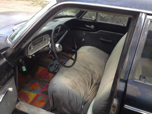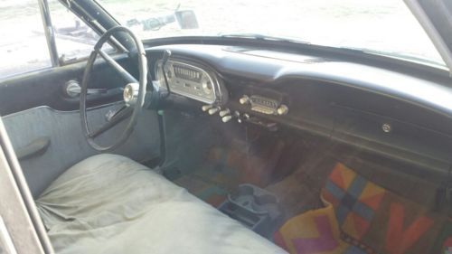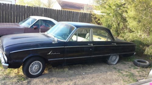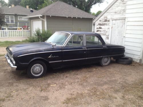 61 ford falcon four door, straight 6, 2 speed automatic. Car runs and drives, just needs a battery, and brakes need to be bled. This car would make a great rat rod, mostly straight body, has a dent on the passenger side front, the floor boards have been patched with some road signs and the trunk has a little rust behind the tires. Has a little surface rust but nothing bad. Has new front tires.