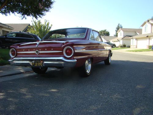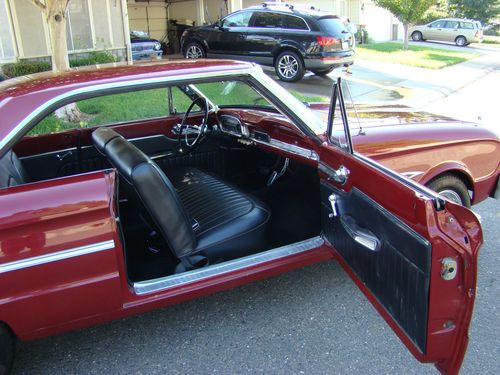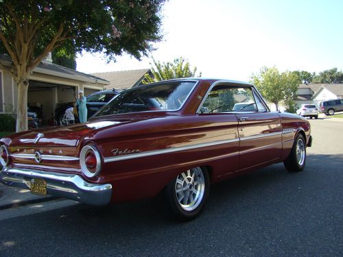 This 1963 Falcon Futura Sprint is the clean one you have been looking for. Burgundy on Black interior that is in excellent shape. Front Disc Brakes, CD with speakers in rear deck. Automatic transmission with the 260 V8 and Dual Exhaust. Car drives very smooth and has just been checked over by Precision Machine in Lodi, Ca. Very clean running and sounds great. One look at the pictures and you will see how nice it is. Local pick-up only, no delivery. Please contact me if you have any questions.