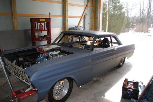1964 FORD FALCON TWO DOOR HARD TOP.. This car was being built for PRO STREET or STRIP... 750Horsepower to the crank. The car has a 514CI big block Stroker with a Skat Crank, Cobra Jet heads Full roller engine with 14.5 to 1 Compression. Custom headers with 1&7/8 inch primary exhaust ports. Body is setting on an ART Chassis with a fully adjustable 4 link rear suspension and fully adjustable front and rear coil over shocks. Rack and pinion front steering and 4 piston weldwood brakes and slotted and drilled rotors. Driving this monster is 2speed powerglide transmission with a blow proof bellhousing, trans brake, Kevlar clutches, a line lock, with a 4500rpm stall. Sending power straight back to the tubed 9inch Ford rear with 433 gears with Knodgular Iron 3rd member and Detroit locker sending power out to the 35 spline mouser axles. Car comes with a painless wiring harness and MSD ignition also comes with the original harness. Comes with all original glass. Interior is 70% complete with custom aluminum panels, for the doors dash and roof and tubes, have the floors. Have Aluminum fuel lines and regulator. Fuel cell is already install in car. Car is 100% steel and body work is 100% done other than wet sand and paint. Everything is here to put the car back together This is a big tire car. Roll cage was built for car that was to be certified for 8 seconds DRAG CAR OR PRO STREET have TITLE to car.. Have a lot of options with this car cant afford to keep this car any longer. 18,000.00 CASH SERIOUS INQUIRES ONLY. FIRST SERIOUS CASH OFFER TAKES IT.. Call 3042700096 Thanks •Location: Martinsburg WV local pickup only will not ship the car....