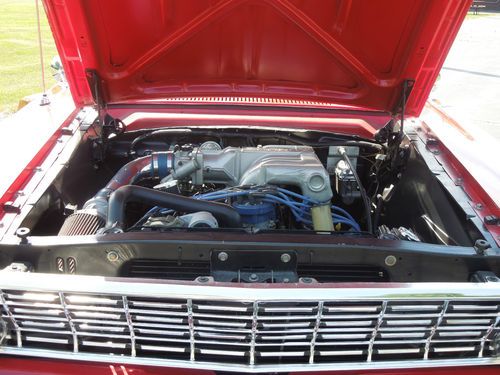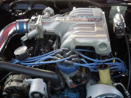 Engine is a 5.0 liter removed from a wrecked 93 Mustang Cobra with around 35K on it. It has around 40K now. This engine comes stock with a better cam and intake and Roller Rocker heads. It has BBK headers exiting into 2.5 inch exhaust with Flowmaster mufflers. The transmission is a 5 speed manual shift removed from a 93 Mustang with around 30K. The rack and pinion front suspension is a crossmember kit from Street Rod Engineering in Arizona and has tubular upper and lower control arms.