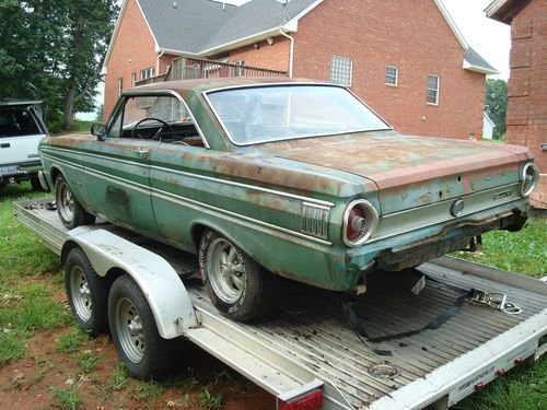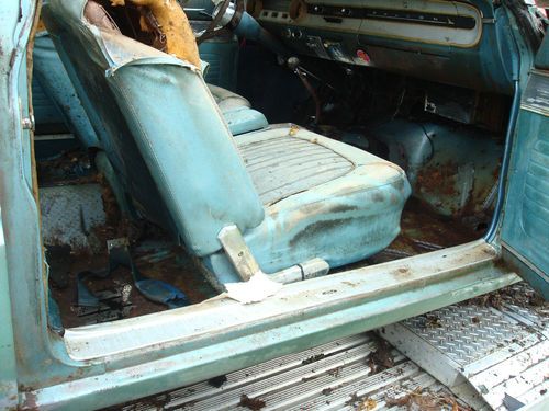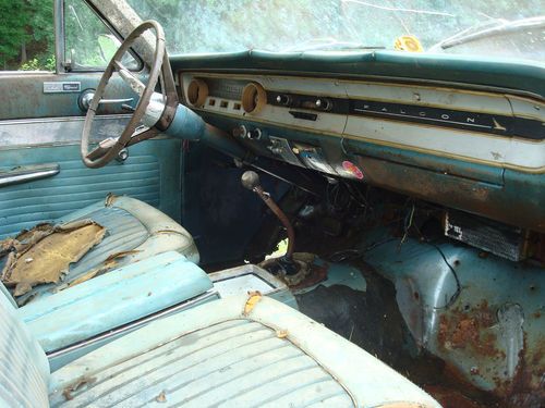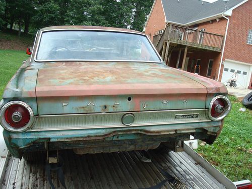 HERE IS A 1964 FALCON SPRINT V8 FACTORY 4 SPEED CONSOLE CAR THAT IS IN PRETTY GOOD SHAPE. IT WILL NEED TO BE RESTORED AND IT DOES HAS SOME RUST BUT NOT TOO BAD, THE QUATERS HAVE FEW PIN HOLES IN THE BOTTOMS, BUT THE ROCKERS LOOK SOLID, ONE OF THE DOORS HAS COUPLE SMALL HOLES IN THE VERY BOTTOM EASY FIX, ITS GONNA NEED THREE FLOOR PANS, AND ITS ALSO COULD USE TWO FENDERS AND A TRUNK LID,THE TRUNK PAN LOOKS REALLY SOLID HAS A SMALL HOLE BE A EASY PATCH, THIS CAR COMES WITH ORGINAL OWNERS MANUEL AND WARRENTY CARD, IT HAS 49,950 ACTUAL MILES ON HER, THIS IS A RARE UNTOUCHED CAR THATS NEVER BEEN RESTORED AND ONE FAMILY OWNED, THE GUY SAID HE HAD IT RUNNING A FEW YEARS BACK NOT SURE IT IT WILL RUN NOW OR NOT,THIS CAR IS BEING SOLD AS-IS AND PLEASE BID TO BUY, NO TIRE KICKERS IF YOU BID ON THIS CAR I EXPECT PAYMENT SENT WITH IN 24-48 HOURS AFTER AUCTION IS WON, AND I WANT THE MONEY SENT BEFORE YOU COME AND GET THE CAR, I HAVE HAD SOME PEOPLE BUY CARS IN THE PAST THEN WANT TO COME INSPECT THEM AFTER THEY ALREADY ONE THE AUCTION AND HAD ALREADY BOUGHT THE CAR, PLEASE CONTACT ME AT 540-556-5557 WITH ANY QUESTIONS I AM LISTING THIS CAR FOR A FRIEND AND I DESCRIBED THE CAR BEST THAT I CAN THANKS KEVIN