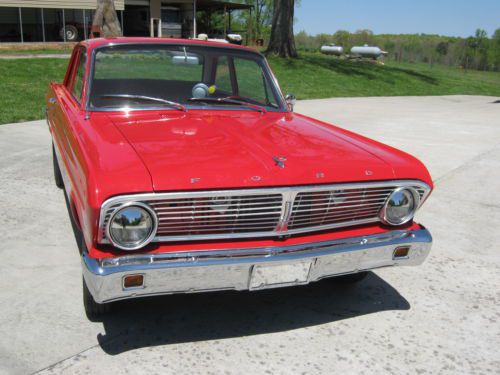 THIS IS A RESTORED 1965 FORD FALCON WITH A 302 BOARD OUT TO 347 STROKER, HAS A MILD ROLLER CAM WITH ROLLER ROCKERS,CAST ALUMINUM DEEP PAN,CHROME PULLY SET,C-4 AUTO TRANSMISSION WITH A QUARTER STICK SHIFFTER,WELD RACEING WHEELS,FRONT TIRES 165/80/15,REAR TIRES 265/50/15,ALLNEW INTERIOR,ALL NEW EXHAUST THAT SOUNDS AWESOME,NEW GAUGES,NEW GRANT STEERING,ORIGINAL DASH,NEW FRONT DISC BRAKES,FORD POSI REAREND,FOR MORE INFO,E-MAIL OR CALL 706-201-4324. TREMS OF AUCTION, 500 DOLLARS TO PAY PAL AT CLOSE OF AUCTION AND THEW BALANCE FIVE DAYS THEREAFTER.