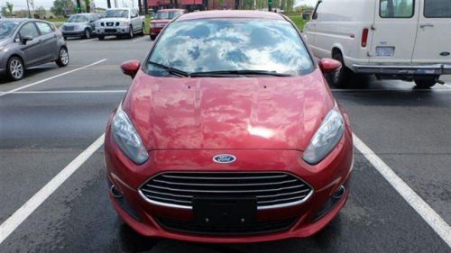 This 2014 Ford Fiesta 4dr 4dr Sdn SE Sedan features a 1.6L TI-VCT I-4 4cyl Gasoline engine. It is equipped with a 6 Speed Shiftable Automatic transmission. The vehicle is Ruby Red Metallic Tinted Clearcoat with a Charcoal Black with Red Cloth interior. It is offered with a full factory warranty. - Cruise Control, Tinted Windows, Power Door Locks, Tachometer, Digital Info Center, Tilt Steering Wheel, Steering Wheel Radio Controls, Side Airbags, Keyless Entry, Security System, ABS Brakes, Traction Control, Dynamic Stability, Rear Defogger, Intermittent Wipers, 16 inch Aluminum Wheels, Cloth Interior Surface -
