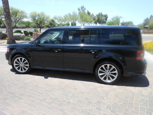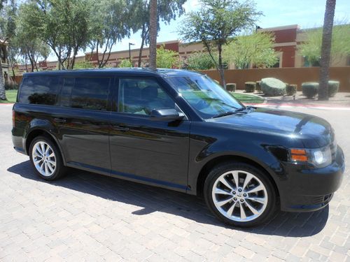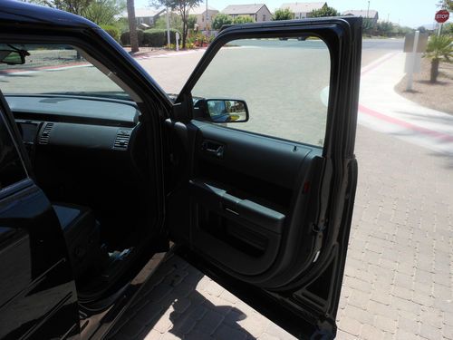 YOU ARE VIEWING AN ULTRA SHARP ONE OF A KIND 2011 METALLIC BLACK MATCHED WITH A GORGEOUC BLACK LEATHER INTERIOR FORD FLEX TURBO!!!!!---..........27,100 MILES!!!!..................4X4/AWD(ALL-WHEEL-DRIVE)............... 3.5 LITER (ECOBOOST TURBO) V6 ENGINE PRODUCING AMAZING POWER FROM THIS TURBO ENGINE................. 6 SPEED AUTOMATIC TRANSMISSION WITH A MANUAL SPORT GEARBOX ,FOR THOSE TIMES WHEN YOU WANNA LET GO A BIT (WITH STEERING WHEEL PADDLE SHIFTERS).................Ford's Exclusive VISTA PANORAMIC ROOF which is pretty much an all glass rood with 4 strategically placed glass roofs (see pics) and brings out gorgeous sun rays in this vehicle..........This gives this Gorgeous flex a full sky view at anytime and each glass pocket has its own sliding shade............Rear DVD entertainment system for the little ones on those long trips.....3rd ROW POWER SEAT WITH 4 DIFFERENT FOLDING OPTIONS GIVING YOU THE ABILITY TO MAKE ALL KIND OF STORAGE ROOM...2nd row POWER Captains chair that fold down with a push of a button,VERY hard to find...POWER REAR lift gate operation which can be controlled from 3 different sources...........20 INCH POLISHED WHEELS IN A SUPEB CONDITION(minor road scuffs).......TPMS ( tire pressure monitoring system)........STATE OF THE ART TOUCH SCREEN NAVIGATION WITH SATELLITE GUIDANCE (TURN BY TURN) WITH PRECISE DIRECTIONS, DVD PLAYER ( ONE OF THE BEST LOOKING AND USEFUL NAVIGATION SYSTEMS ON THE MARKET).....THIS FLEX IS EQUIPPED WITH AUTO PARK ASSIST ENDING YOUR PARALLEL PARKING NIGHTMARE (VERY RARE OPTION) ....REAR BACK UP SENSORS ( ALERT YOU WHEN BACKING UP TO A VEHICLE BY SOUNDING OFF AN ALARM)............... REAR VIEW CAMERA AND PARK ASSIST(DISPLAYS REAR VISUAL IMAGES WHEN VEHICLE IS IN REVERSE MODE)..........FACTORY INSTALLED TOW PACKAGE READY FOR USE........ ADVANCE TRACTION CONTROL.............STEERING WHEEL CONTROLS..............4-WHEEL DISC BRAKES...ABS...DUAL EXHAUST WITH CHROME TIPS..............XENON ADAPTIVE HEADLIGHTS (HID LIT BALLAST AND BULT FOR A CRYSTAL BLUE HEADLIGHT)... ........POWER HEATED MIRRORS..............THE INTERIOR IS MATCHED WITH A GORGEOUS BLACK LEATHER SEATING SYSTEM INTEGRATED WITH SUEDE INSERTS.............10 WAY POWER DRIVER & PASSENGER HEATED SEATS........ DRIVER's MEMORY............DVD /CD CHANGER/MP3/JUKE BOX WITH HARD DISK DRIVE AND ALL POWERED BY A SONY PREMIUM SOUND SYSTEM WITH 12 IN-CAR SPEAKERS FOR PERFECT SURROUND SOUND.........SIRIUS SATELLITE RADIO... SYNC POWERED BY MICROSOFT WHICH OFFERS MULTIPLE MEDIA OUTLETS...........PLAY YOUR DIGITAL MUSIC THROUGH VOICE ACTIVATED COMMANDS.......Premium interior wood grain trim........PLAY MUSIC OFF YOUR PORTABLE DEVICES THROUGH THE USB PORT, AND AUX INPUT.............. TEXT MESSAGING FOR SUPPORTED PHONES..............., DUAL AUTO TEMPERATURE CONTROL........... ICE COLD AC.......POWER ADJUSTABLE BRAKE PEDAL.....Keyless entry keypad located on drivers door.......TILT /TELESCOPING LEATHER WRAPPED STEERING WHEEL.............AMBIENT LIGHTING........................THIS VERY RARE FORD FLEX IS IN ABSOLUTE GOOD CONDITION...........REALLY LOOKS AND DRIVES GREAT..SUPER SMOOTH AND POWEFUL RIDE THAT WILL MAKE YOUR JAW DROP!..........Rear AC/HEAT controls and so much more on this beauty..........GET THIS VEHICLE AND ALL THE AMAZING TECHNOLOGY THAT COMES WITH IT FOR A MERE FRACTION OF THE NEW PRICE WITH THIS NO RESERVE WINNER TAKES ALL AUCTION.........THIS VEHICLE RUNS AND DRIVES GREAT AND DELIVERS AMAZING POWER FROM THE 3.5 LITER ECOBOOST TURBO ENGINE......THERE IS NOT AN OPTION THAT THIS VEHICLE DOES NOT COME EQUIPPED WITH IN THE MOST INTRIGUING COLOR COMBO.