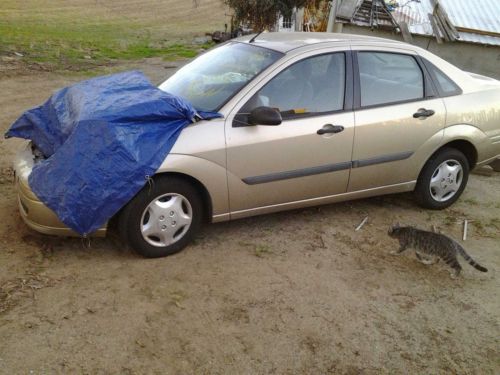 2002 Ford Focus Hit in Front, Good Engine and Automatic Transmission, 103,824 miles, Gold Metalflake / Grey Interior. Damage is over the frame horn on the right side. Rt fender, Hood, Grill, Radiator, Fans, Condenser, Condenser tubing, core support, windshield, both air bags, and the power steering pump will need to be replaced. Mechanical damage seem to be power steering pump only