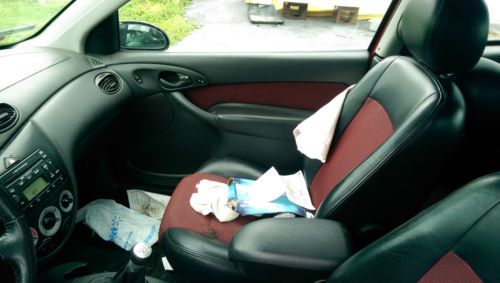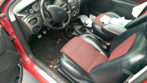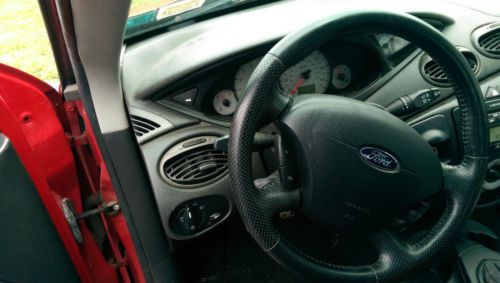 Up for sale is a 2003 SVT Focus. I owned this car about 3 years ago and then sold it to my friend. When I bought the car it had a rebuilt title. It was T-boned when it had low miles on it and the people I bought it from drove it for years with no problems. When my friend had it he smashed it up and I bought it back from him. He didn't have collision on it so I bought it for parts. The only air bag that popped was the passenger seat one. The rails are bent bad but it starts and will lot drive. The wheels and tires have been sold. It has just junk ones on it. Motor and tranny are perfect and there is still a ton of parts left in it. Last bidder buys it. The only thing thats been removed off the car were the OEM SVT wheels.