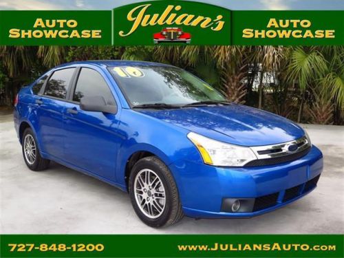 One Owner! GORGEOUS BLUE FLAME METALLIC EXTERIOR! LOW MILES! GAS SAVER - PERFECT STARTER CAR OR FOR COLLEGE GRAD! Welcome to Julian's Auto Showcase virtual online tour... We present to you this 2010 Ford Focus SE powered by the gas saving 2.0liter 4 cylinder engine. Only 43 thousand miles! AUTOCHECK 100% PERFECT 1 OWNER! Come to the experts! Are you interested in a simply outstanding car? Then take a look at this wonderful vehicle! Have one less thing on your mind with this trouble-free vehicle. It is nicely equipped with features such as 4-Wheel Disc Brakes, 6 Speakers, ABS brakes & Air Conditioning. Thanks for looking and we look forward to doing business with you at Julian's Auto. All preowned vehicles are not created equal. We inspect our vehicles, sometimes twice, to make sure that you are getting one of the finest automobiles available. That being said, we are not a new car store and preowned vehicles will have normal wear and tear that is in keeping with the year & miles. WARNING - THIS VEHICLE IS CURRENTLY BEING SEEN BY THOUSANDS OF CUSTOMERS ALL OVER THE WORLD! We use state of the art software to price our vehicles to be the most competitive in the market. If you have found a better value, let us know about it. We would love the opportunity to keep giving the best Call 877-340-4605 or come by today... Located at Julian's Auto Showcase 6404 US HWY 19 NEW PORT RICHEY, FL, 34652 online mobile.juliansauto.com Julian's Auto Showcase is the #1 selling independent car dealer in Pasco County! Come to Julian's for the Best Deal in Town! Visit us Monday through Saturday 8:30am-8:00pm and Sundays 11:00am-4:00pm. Good Credit, Bad Credit, No Credit - We Do it All! Give us the chance to save you THOUSANDS of DOLLARS and EARN YOUR BUSINESS - You'll be glad you did!