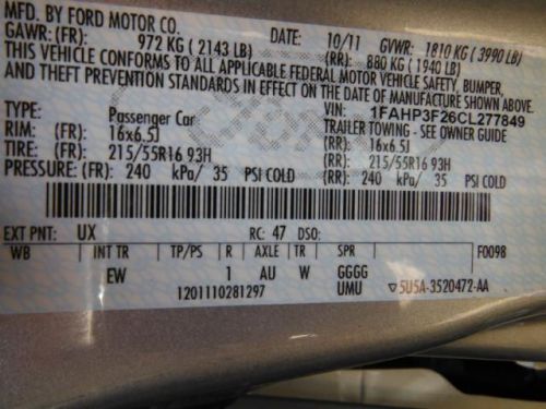 VIN (Vehicle Identification Number): 1FAHP3F26CL277849