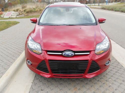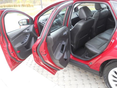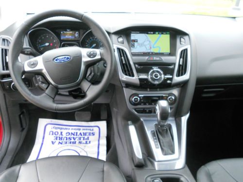 YOU ARE VIEWING A SUPER SHARP RED EXTERIOR WITH BLACK LEATHER 2012 FORD FOCUS TITANIUM IN EXCELLENT CONDITION...2.0 LITER I4 ENGINE RUNS VERY SMOOTH WITH GREAT GAS MILAGE...(28 CITY-38HIGHWAY)...ONLY 15,822 MILES ON THIS BABY BEARLY OWNED STILL SMELLS LIKE NEW AND DRIVES LIKE NEW CAR....6 SPEED SHIFTABLE AUTOMATIC TRANSMISSION...POWER FRONT LEATHER SEATS..SONY NAVIGATION SYSTEM...BLUETOOTH CONNECTION..AUXILIARY AUDIO INPUT...ADJUSTABLE STEERING WHEEL..AUTOMATIC HEADLIGHTS...BUCKET SEATS...MP3 PLAYER... KEYLESS ENTRY...KEYLESS START..CLIMATE CONTROL..FOG LAMPS..TINTED WINDOWS.. REAR PARK SENSORS...LEATHER STEERING WHEEL..SONY NAVIGATION PREMIUM SOUND SYSTEM..CRUISE CONTROL..STEERING WHEEL AUDIO CONTROLS....UNIVERSAL GARAGE DOOR OPENER...INTEGRATED TURN SIGNAL MIRRORS..SUNROOF..POWER MIRRORS,WINDOWS,DOOR LOOKS,OUTLET,STEERING...TRIP COMPUTER...TRACTION CONTROL..REAR SIDE AIRBAGS..INTERMITTENT WIPERS...MULTI-ZONE AC...TIRE PRESSURE MONITOR...VOICE-ACTIVATEDNAVIGATION SIRUS TRAFFIC TRAVEL LINK...SECURITY SYSTEM..ABS..SATELLITE RADIO...CHILD SAFETY LOCKS...ENGINE EMOBILIZER...17" INCH SPORT WHEELS.... THIS TITANIUM COMES VERY WELL EQUIPPED WITH OPTIONS....!!! THIS IS A NO RESERVE AUCTION WHICH MEANS HIGHEST BIDDER WILL TAKE THIS SHARP 2012 FOCUS HOME!!!
