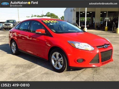 Thank you for visiting another one of AutoNation Ford Brooksville's online listings! Please continue for more information on this 2013 Ford Focus SE with 32,869 miles. This wonderfully fuel-efficient vehicle offers a supple ride, quick acceleration and superior styling without sacrificing MPGs. You've found the one you've been looking for. Your dream car. This Ford includes: 6-SPEED POWERSHIFT AUTOMATIC TRANSMISSION A/T 6-Speed A/T DAYTIME RUNNING LIGHTS Daytime Running Lights 50-STATE EMISSIONS MEDIUM LIGHT STONE, CLOTH SEAT TRIM W/MEDIUM DARK STONE SURROUND Cloth Seats 2.0L GDI I4 PZEV ENGINE 4 Cylinder Engine Gasoline Fuel *Note - For third party subscriptions or services, please contact the dealer for more information.* More information about the 2013 Ford Focus: The new Ford Focus is a small car that offers a number of features otherwise seen in larger or more luxurious vehicles. For instance, the Focus is also the first vehicle in its class to offer Active Park Assist, which can actually guide and steer the car into a parking space if the driver moderates speed with the brake. It's also the first small car to offer Ford's new MyFord Touch system, which relies on a sophisticated touch-screen system and has advanced voice-command features and can even provide WiFi for the car and the area surrounding. Technology aside, the new Focus stands out from the class for its excellent handling and poise, sporty driving feel, and impressive fuel economy. Interesting features of this model are choice of hatchback or sedan, fuel-efficient powertrains, fully electric Focus available, sleek, charismatic new style, World-first small-car technology like Active Park Assist and MyFord Touch, and handling and poise Please call888-490-6841, Internet Sales Manager, for special Pricing. No combined discounts or sales. Good Credit, Bad Credit, No Credit, No Problem!