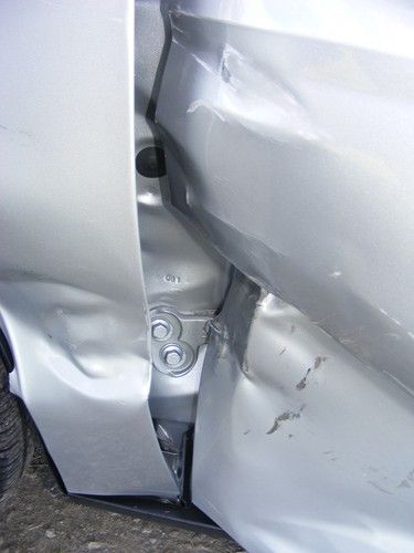 The front drivers door post is bent in a inch or so at the bottom and will need pulled back.