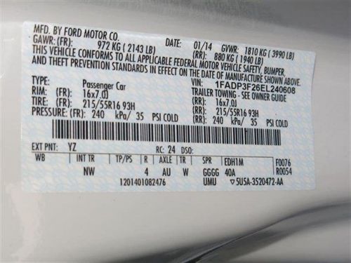 VIN (Vehicle Identification Number): 1FADP3F26EL240608