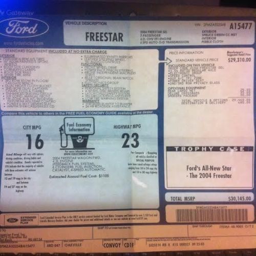 From the makers of the revolutionary Model T, the iconic Mustang featured in the classic movie “Bullitt”, and the Torino sedan driven by “The Dude” himself, is your chance to have your very own piece of Ford machinery. This sweet ride has created the best memories for my friends and family, and now it’s time for you to experience that same joy. This 2004 Ford Freestar SEL minivan is equipped with the 4.2L V6, 4 speed transmission, AM(still exists)/FM/CD/Cassette(great for the cassette adapter for iPods), and lots of power (windows, seats, mirrors, etc)! And if you ever end up homeless, the passenger seats can be removed, leaving plenty of room for an air mattress in your new “studio apartment”. And the back glass is big enough to display those soccer, stick figure, or political decals to let everyone know who your ride represents. So, why not get a vehicle that your family will love to ride in on those long roadtrips across America. And if you have the kinda kid that loves to talk on trips, strap 'em in the 3rd row seating and let the tunes from the stereo drown them out on your way to Grandma's house. C’mon, you know you want to buy it. Let the bidding begin.