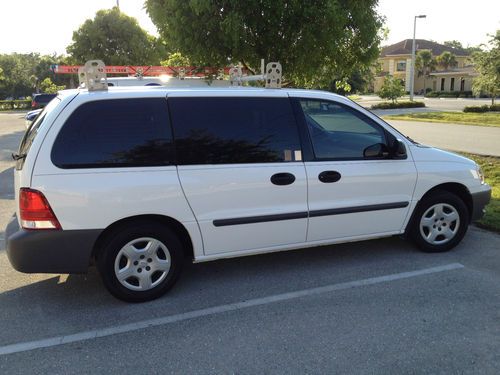 THANK YOU FOR VIEWING MY FORMER PERSONAL WORK MINI VAN. I'M THE ORIGINAL OWNER AND THIS VEHICLE IS IN MINT CONDITION FOR ITS AGE. YOU WILL NOT FIND A COMMERCIAL VEHICLE LIKE THIS IN THIS CONDITION WITH A CLEAN CARFAX!!!. THE SERVICE MAINTENANCE HAS BEEN CONDUCTED AS PER FACTORY REQUIREMENTS (INCLUDING AND OIL AND TRANSMISSION FLUID CHANGES). I AM THE OWNER OF A LOW VOLTAGE SECURITY COMPANY AND HAVE USED THIS VAN FOR LIGHT DUTY SERVICE, EQUIPMENT DELIVERIES AND SALES. AS YOU CAN SEE THE INTERIOR IS IN EXCELLENT CONDITION SINCE I SCOTCHGAURDED ALL UPOLHSTRY FABRIC AND CARPET PRIOR TO INSTALLING SEAT COVERS FROM DELIVERY. THE PAINT IS LIKE NEW ALSO BECAUSE ITS BEEN STORED IN MY GARAGE MOST OF ITS LIFE WHEN NOT IN USE. I HAD AN INTRUSION CAR ALARM INSTALLED AT BEST BUY FOR APPROX $450.00 AS WELL AS A SIRIUS XM SATELITE RECEIVER. ALSO INSTALLED WERE INTERIOR SHELVES, BINS AND LADDER RACK FOR AROUND $1000.00. THE CAB PARTITION WAS DELIVERED WITH THE VEHICLE FROM THE FORD DEALER. THIS VEHICLE IS FOR SALE LOCALLY AS WELL AS BEING USED FOR DELIVERIES, SO THERE WILL BE ADDITIONAL MILES ABOVE THE POSTED ODOMETER READING. THIS GAS SAVING MULTI PURPOSE UTILITY VAN WILL BE SOLD WITH A NO RESERVE!!! SO BE SURE TO CLICK THE BUY IT NOW AT $7995.00 TO TAKE THIS MONEY MAKER HOME!!!! THIS VAN IS BEING SOLD AS IS WHERE IS. IT WILL NOT BE PICKED UP OR RELEASED UNTIL ALL FUNDS HAVE CLEARED OUR BANKGOOD LUCK BIDDING!!!!!!!!!!!!!!!