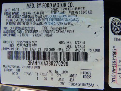 2011 ford fusion se sedan 4-door 3.0l(US $10,500.00)