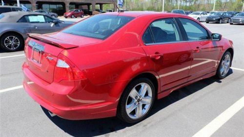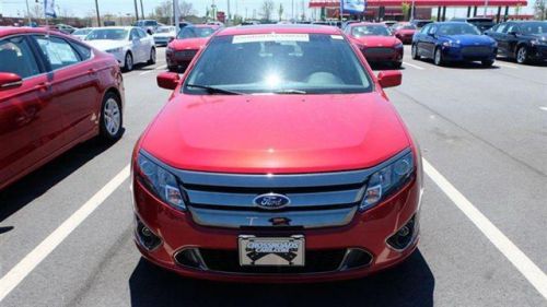 This 2011 Ford Fusion 4dr 4dr Sdn SPORT FWD Sedan features a 3.5L 24V V6 DURATEC 6cyl Gasoline engine. It is equipped with a 6 Speed Shiftable Automatic transmission. The vehicle is Red Candy Metallic Tinted with a Charcoal Black Leather interior. It is offered with the remaining factory warranty. - Air Conditioning, Dual Zone Climate Control, Cruise Control, Tinted Windows, Power Steering, Power Windows, Power Door Locks, Power Mirrors, Leather Steering Wheel, Leather Shifter, Power Drivers Seat, Heated Seat, Rear Air Conditioning, Clock, Tachometer, Digital Info Center, Tilt Steering Wheel, Telescoping Steering Wheel, Steering Wheel Radio Controls, Moonroof, Driver Airbag, Passenger Airbag, Side Airbags, Keyless Entry, Security System, ABS Brakes, Traction Control, Rear Defogger, Fog Lights, Intermittent Wipers, AM/FM, CD Player, CD Changer, Factory Premium Sound System, 18 inch Aluminum Wheels, Sport Package, Leather Interior Surface,, Cup Holders, Tire Pressure Monitor, Front Heated Seats, Vanity Mirrors, Exterior Keypad Entry, Parking Sensors, Carpeted Floor Mats, SYNC- Voice Activated System, Compass And Temperature Display, Center Arm Rest, Aux. Audio Input, Remote Trunk Lid, 12v Power Outlet, Child Proof Door Locks, Center Console, Bluetooth, Premium Alloy Wheels, Side Curtain Airbags, Chrome Exhaust Tips, Compass And Temperature Display, Rear Spoiler, Overhead Console, Premium Sound, Rear Spoiler -