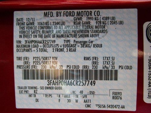 VIN (Vehicle Identification Number): 3FAHP0HA6CR257749
