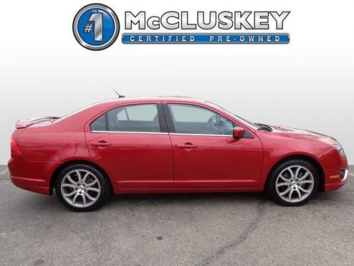 Fusion SEL, 4D Sedan, 6-Speed Automatic, **Free Lifetime Mechanical Protection, 6 Speakers, Air Conditioning, Alloy wheels, Automatic temperature control, CD player, Front dual zone A/C, Heated front seats, Moonroof, MP3 decoder, Power driver seat, Power steering, Power windows, Premium Leather-Trimmed Bucket Seats, Radio data system, Remote keyless entry, and Speed control. McCluskey Chevrolet's Free Lifetime Mechanical Protection. How tempting is the reliability of this hardy 2012 Ford Fusion? The outstanding condition of this Fusion displays all the signs of a loving owner it. This car is well pampered and runs like new. Named a 2010 Consumer Guide Best Buy.