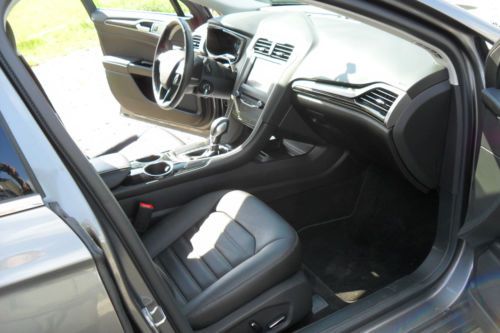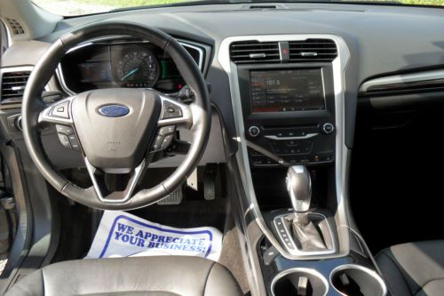 YOU ARE VIEWING VERY SHARP NEW MODEL 2013 FORD FUSION SE WITH BEAUTIFUL COLOR COMBO STERLING GRAY METALLIC MATCHED WITH BLACK LEATHER INTERIOR...ONLY 5,938 MILES BEARLY OWNED/DRIVEN...CAR DRIVES/LOOKS LIKE NEW..THIS MODEL COMES LOADED WITH OPTIONS EVEN THOUGH ITS SE MODEL AS LISTED BELOW... -OWNERS MANUAL -BACK-UP CAMERA -FOG LIGHTS -CHROME GRILLS -SYNC VOICE SYSTEM -KNEE AIR BAGS DRIVER/PASSENGER -6 SPEAKERS -LEATHER-WRAPPED STEERING WHEEL/AUDIO CONTROLS -SPEED SENSING STEERING SPOILER THIS IS A NO RESERVE AUCTION SO BASICALLY HIGHEST BIDDER TAKES THIS BAD BOY HOME!!
