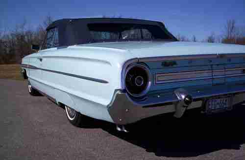 Up for sale is the clean TURN KEY 1964 Ford Galaxie 500 convertible originaly from Virginia and still has the VA window sticker, that has been owned by the same family for over 30 years, Never driven in the snow and has alway been garage kept and covered, has been driven every spring and summer, even last summer. The car is a turn key convertible, has had the top replaced about 10 years ago, ans is a 289 V-8, New tires and brakes, dual exhaust, Automatic, has 90,288 original miles, the color is Robins egg blue, Nice interior, and has the wheel skirts and so on. The owner passed away is the only reason for the sale (close family friend). Any questions, shoot me an email or a call. This has been well cared for by the owner and has a few minor scratches and minor dents and a few areas that seem to be bubbling and the photos do not do it justice. For out of state buyers, we will work with you as to meeting a shipper at our location or if you wanted to, drive it home. The plates have been removed, and we will not disclose our reserve but is fairly priced in this condition. The top has a glass back window, CD player. Any questions, feel free to ask.