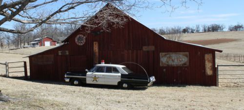 YOU WILL HAVE MORE FUN IN THIS ANDY AND BARNEY MAYBERRY CLONE THAN YOU CAN IMAGINE. IT HAS A WORKING LIGHT AND SIREN. IT ALSO HAS A POLICE RADIO WITH A SCANNER IN THE GLOVE BOX, ITS LIKE THE REAL THING, JUST TUNE IN YOUR LOCAL POLICE DEPARTMENT. ALL THE GLASS IS GOOD EXCEPT A SMALL CRACK IN THE RIGHT SIDE OF THE WINDSHIELD, WHICH WE HAVE COVERED UP WITH FAKE BULLIT HOLES. THE AM RADIO WORKS AND IT HAS ALL ORIGINAL INTERIOR WITH A LITTLE WEAR IN THE DRIVERS SEAT AND DRIVERS CARPET. WE PUT A NEW MAT IN THE SOLID TRUNK AND NEW TRUNK SEAL. THIS CAR HAS VERY LITTLE RUST THAT I COULD SEE. I HAVE BUILT ABOUT 20 OF THESE CARS AND EVERYONE THAT BOUGHT ONE HAD A BIG TIME. THIS CAR DRIVES OUT GOOD AND WE DID A COMPLETE TUNE AND SERVICE.