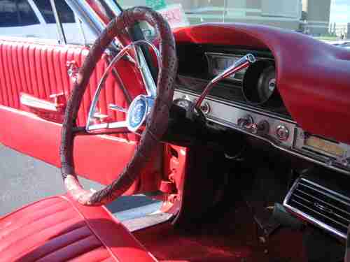 1964 Ford Galaxie. 2 door hardtop. Red inside and out. Has a 1965 390 engine. Transmission has been recently rebuilt. Mileage unknown. Runs fine. Great for cruising on the weekends!