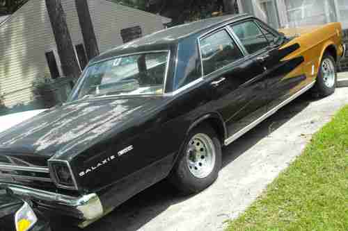 1966 FORD GALAXIE 500 4door, 352 BIG BLOCK, AUTOMATIC WITH 2 1/2 INCH DUAL EXHAUST WITH CHAMBERED MUFFLERS(Flow Master Mufflers), MOTOR AND TRANSMISSION REBUILT. NEW HEAD GASKEST AND MANIFOLD GASKET . RUNS AND SOUNDS LINE A CLOCK WORK. HAVE BEEN SETTING UP FOR YEARS SINCE WIFE'S DEATH IN 1998 BUT, IS CRANKED UP ON A REGULAR. HAVE A FEW RUST SPOTS ON DOOR AS SHOWN IN PICTURE(PIC. 4,5) AND A SPOT IN TRUNCK (PIC.13), AND INTERIOR SEATS, HEAD LINER, AND DASH PAD NEEDS TO BE REPLACED. THE CLEAR COAT IS COMING OFF CAR AS SHOWN IN PICTURE. I'LL RATHER SELL HER THAN SEE THIS CAR GO TO BAD JUST SITTING UP. COME TEST DRIVE HER, I REASSURE YOU, YOU'LL LOVE IT. reserve is set a $2,600 w/o new tires.