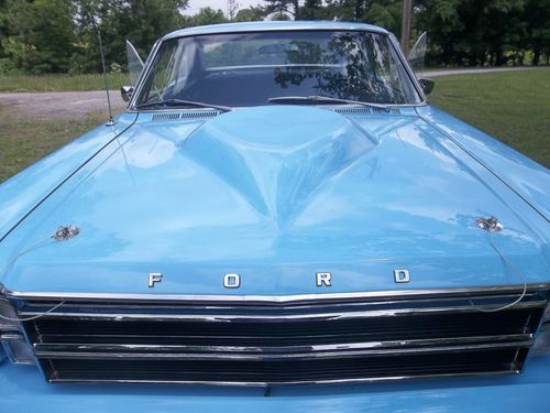 1966 Ford LTD 2 door hardtop 390 4 bbl Edelbrock, TCI C6 automatic and new dual exhaust. The motor and trans are strong and run excellent. The body is straight and the light blue paint will knock your eyes out. The car has no rust on the body, trunk or floor pans. The interior is good and the seats look new. All the lights and blinkers work. The car has power steering, power brakes and windows. The car drives and rides great. The exhaust sounds great and the motor has no smoke or noises. The car has weld wheels with new tires. The grill and bezels have been rechromed. You can hop in and go anywhere like I do. All the glass is good but need pass side window switch. The hood and bumpers are fiberglass but I have the original hood, bumpers and orig working trans for the car that will go with it. Call or text for more info before bidding. 1 618 697 8294 The car is for sale locally so auction could end early. Thank you.