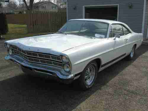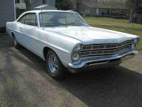 THIS IS AN AMAZING 1967 FORD GALAXIE 500. IT HAS BEEN REDONE TO A LARGE EXTENT AND NEEDS ONLY SMALL THINGS TO MAKE IT A BEAUTIFUL CRUISE IN CAR. IT HAS BEEN REPAINTED AND TWO NICKLE SIZED HOLES IN THE REAR QUARTERS HAVE BEEN LEADED IN AND FIXED THE RIGHT WAY, OTHER THAN THAT I KNOW OF NO BONDO IN THE CAR. IT HAS ALL OF THE TRIM AND JUST NEEDS THE SIDE TRIM PUT BACK ON, I HAVE IT ALL AND MANY EXTRAS IF YOU EVER NEED THEM FOR THE LOWER TRIM PARTS. IT WILL HAVE A NEW SUMMIT RACING STARTER IN IT BY THE TIME THE AUCTION IS OVER. COMES WITH EXTRA TRANSMISSION COOLER LINES, THE EXTRA TRIM I TALKED ABOUT, AN EXTRA DASH PAD TO MAKE IT LOOK NEW AS WELL AS ONE ALREADY IN THE CAR, EXTRA REAR INTERIOR PANELS IN WHITE, THE FRONT DOOR CARDS ARE WHITE NOW AND ARE THE ONLY THING ON THE INTERIOR THAT DOESN'T MATCH. ALSO WILL COME WITH AN ENTIRE FRONT END POLYURETHANE BUSHING KIT THAT WILL MAKE IT HANDLE MUCH BETTER. MANY MISC. HOSES FASTENERS AND CLIPS AS WELL AS A 1967 FORD AND MERCURY SERVICE MANUAL AND SOME OTHER LITTLE THINGS I CANT REMEMBER RIGHT NOW. THE ENGINE HAS BEEN REDRESSED WITH ALL NEW ACCESSORIES INCLUDING A NEW ALTERNATOR, WATER PUMP POWER STEERING PUMP STARTER SOLENOID, ALL NEW OR POWDERCOATED BRACKETS AND BELTS AND HOSES. NEW DISTRIBUTOR, HARMONIC BALANCER, PLUGS WIRES AIR FILTER AND BATTERY ALL IN THE LAST YEAR. BASICALLY THE ENGINE BLOCK, INTERNALS, INTAKE AND CARB ARE ORIGINAL, HOWEVER THE INTAKE IS NOT THE ORIGINAL GALAXIE INTAKE IT IS A FORD INTAKE BUT WE BELIEVE IT TO BE FROM A HIGHER PERFORMANCE FORD MODEL 289. THE CARB HAS BEEN DECODED AS AN AUTOLITE 4 BARREL AND ALL THIS MAKES THIS THING FLY. IT DOES HAVE STANDARD DRUM BRAKES THAT WORK GREAT BUT THEY ARE NOT POWERED OR DISK. NEW VALVE COVERS MAKE THE ENGINE COMPARTMENT LOOK FANTASTIC TOO. THE STEERING COLUMN IS RED SINCE THE ORIGINAL COLOR OF THE INTERIOR WAS RED. OW ITS WHITE ON BLACK AND OTHER THAN THE ROOF LINER AND STEERING COLUMN ITS ALL BLACK. NEW L.E.D BRAKE AND RUNNING LIGHTS WERE INSTALLED TO MAKE THEM BRIGHTER AT NIGHT. THE 15' CRAGARS AND BF GOODRICH 225/70/15 ARE NEW WITH ONLY 33 MILES ON THEM. THE INTERIOR WAS SOUNDPROOFED WHEN THE NEW CARPET WENT IN AND IS MUCH QUIETER THA ORIGINAL. IT HAS A PIONEER STEREO NEW 6X9 REAR SPEAKERS NEW 4 INCH FRONT SPEAKERS AND AN AMP AND SUB WIRED INTO THE TRUNK. SEEMS TO CUT OUT SOMETIMES BUT SOUNDS AWESOME FOR A CRUISE IN OR A DAY OUT. MY FIRST CAR WAS A 1967 GALAXY 500 AND I WAS HIT BY A DRUNK DRIVER, IT WAS FIXED BUT WAS NEVER THE SAME AND MY DAD SOLD IT IN 1988. I ALWAYS WANTED ANOTHER ONE AND THEN IN 2011 MY DAD GOT CANCER. I SOLD MY VICTORY MOTORCYCLE AND FOUND THIS ONE AND BOUGHT IT FOR HIM TO HAVE SOMETHING TO LOOK FORWARD TO WORKING ON AFTER HIS SURGERY. HE DID ALL THE WORK AND RECOVERED AND SINCE THEN WE HAVE HAD A BLAST WORKING ON IT JUST FATHER AND SON. HOWEVER AT 43, I JUST FOUND OUT I AM HAVING A SECOND CHILD AND AM FORCED TO SELL THIS TO HELP PAY FOR A MINI VAN. YIKES I KNOW, BUT IT SERVED ITS PURPOSE AND ITS TIME TO GO TO SOMEONE WHO HAS TIME TO SHOW IT OFF. MY INSURANCE COMPANY, HAGARTY ASKED I INSURE IT FOR 11,200.00 LAST YEAR BUT I KNOW I WONT GET THAT MUCH RESERVE IS JUST TO PROTECT THE MONEY THAT WE HAVE IN THE CAR AND I THINK IS VERY FAIR. I CAN BE REACHED AT THREE THREE OH THREE FIVE THREE ZERO ONE FOUR NINE AND WILL BE HAPPY TO ANSWER ANY QUESTIONS THAT YOU MAY HAVE BEFORE BIDDING ON THIS GREAT CAR. IF I THINK OF ANYTHING ELSE I'LL TRY AND ADD IT. THANKS AND GOOD LUCK BIDDING. OH AND ONE MORE THING IN THE PICTURES YOU WILL NOTICE A BLACK STRIPE ON THE DRIVERS SIDE OF THE CAR, ITS A DECAL NOT PAINT, DAD WANTED TO SEE WHAT IT WOULD LOOK LIKE WITHOUT THE TRIM SO WE HAD A COMPLETE DECAL SET CUT THAT WILL ALSO GO WITH THE CAR.
