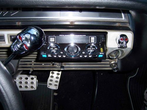 * Skull lighter, skull shifter, skull turn signal knobs…and black dice for the door lock buttons.
