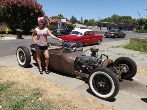 taste. It starts and drives very well. It has a Mopar Slant Six Motor mated to 727 automatic transmission. Carter carburetor and stock manifold. Moon Spun Aluminum gas tank. 12V wiring harness with a chrome GM 80 amp two wire alternator. Mustang radiator with original DB grille shell keeps this Hot Rod Cool. The body is straight and solid overall. It has been shortened eight inches and channeled three inches. Working doors that open and shut well. The windshield is the only glass in the car. The bullet holes in the cowl show the only signs of damage on the body (see pics) non structural and easily repaired if desired. The interior is bare bones but very comfortable (see pics). Padded seats wrapped in a Serape style outdoor cloth and aluminum floor. Vintage Chris Craft steering wheel, Autometer gauges, and steel dash and drive line cover sums it up. A lowered ride with Custom built 2x4 mild steel Z'd frame, Quarter elliptical leafs w/shocks and Mopar rear differential. Up front we have split A100 axel and Quarter elliptical leafs w/shorty shocks. The open drive line has a new drive shaft. New Coker Classics Raidial/bias 16's" wide white walls in the front and rear on powder coated Ford Gennie rims. This "Touring Tub" has many new and upgraded parts, well over 18K invested! Lots of accessories and kustom pieces. Car is titled as a 1917 Dodge Roadster, Drive as is or rebuild it to suit your taste CALL (916)308 zero eight seven 4 or message me for details Bidding indicates that you are satisfied with the information and photographs provided regarding all aspects of the listed item and are committed to completing the purchase if you are the high bidder. All items sold "as is". This is almost a 90 year old car. I have described it as accurately as possible. I can tell you the vehicle starts, go's and stops as it should, but I cannot tell you it will make a cross country or many mile trip to anywhere. The Rat Rod is for sale locally and i reserve the right to end auction early We reserve the right to reject bids made by those with zero or negative feedback, please contact before bidding. The winning bidder is responsible for all
