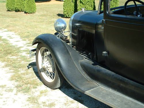 A Decent 1928-29 Model A Coupe. Probably was Amateur redone about 20 years ago. It Has mostly sat (Garaged) the last 10 years. It ran, stops, and drove good (and doesnot over heat) It has the drippy water pump (I have a brand new one to put on-see pictures) It had a oil drip at the oil pan (I have a new Gasket set W/ Rope seal to put on-See picture). The last time I drove it ( about 1 week ago) It spit and sputtered and the carburetor is acting up. it hasnot started since.. I have too many irons in the fire and my Mechanic/friend is booked too far ahead with more of my and other client projects. time to wean my collection. The Coupe has VERY, Very Solid Fenders,Running Boards and splash aprons, No Cracks or welds or repairs, a couple very minor bubbles and paint peal on fenders. the rumbles seat floor has solid sheet metal on the floor covering a rustout (football size) . the sub frame rail under the drivers door post is rusted. lower cowl panels show some rust thru. The doors shut tight with right solid klink shut sound, DoorLock works. all good windows, and work as they should windows Headlights and Dash map light works. speedometer and mileageW/(Tripometer) Works also. any questions or a showing in person E-Mail or Call (317)-508-1605. Clear Title in my name. the buyer is resposible for all pick-up, shipping fees. Can store a reasonable time and help with loading, 18 wheelers can load here. Thanks Just as a side note! The Close-up picture of the drivers side front fender that shows the scuff marks, from, when they sat on the fender and was rabbit hunting back in the day.