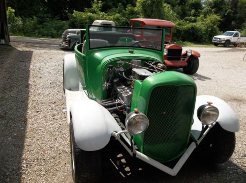 This vehicle is a hand made from ground up. It has an all steel original body. Hot rod engine that is very fast, two four barrels built for speed. Five speed transmission, with mustang II front end and a 86 mustang rear end. No dents or dings on body. Runs great.
