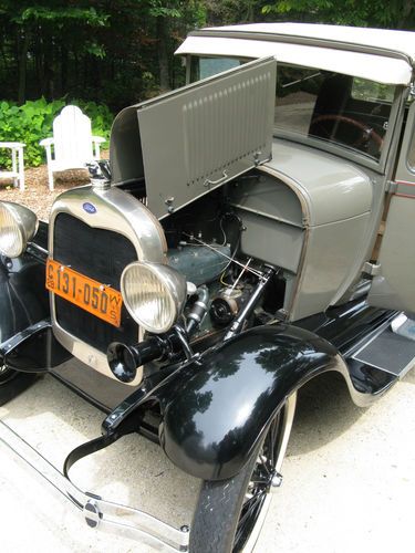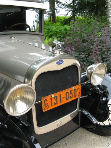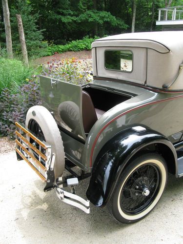 The entire life of the car has been in Wisconsin and I am the third owner. I purchased the sport coupe on October 8, 2004 from a local woman after the death of her husband. The car had been restored in the late 1990's. Recently, the original license plates were found by the widow and are included. The restoration included a LeBaron Bonney interior and top, fabric rumble seat and body repainting using the original Copra Drab DDL 440 color and black fenders. Several veteran members of the local Model A Club knew of the car and quality of restoration. The sport coupe is authentic (excluding the luggage rack) including the early 1928 red steering wheel, nickel plating of the radiator shell and headlights. The engine is original. The car went through a complete rework (including necessary part replacement) procedure which was done by the president of the Model A Club during the remainder of October 2004. Available on request is a five page analysis of the codition of the car at purchase and the new related rework including listing of all parts. Major items include: carburetor, door hardware and glass, electrical systems, manifold gasket, exhaust system, spark plugs, hoses, speedometer, water pump, fan belt, distributor, painting of engine, rewiring of instrument panel, kingpin, rear axle grease seals. Additional work after 2004 includes: 2006 - new brake work including brake shoes, reface of brake drums, new front and rear roller pin and floater. 2007 - replacement of 7 tooth steering box, shaft and new spines. 2009 - new battery and replacement of generator (which is available if requested) with alternator. 2010 - new spindle bolt set. 2012 - new front outer bearing. The speedometer was not functioning when I purchased the car in 2004. New speedometer installed in 2004 has 4300 miles on the odometer. Included is a notebook of all service records and invoices of all work from 2004-2013. The car has been unique to the Model A Club which includes only three sport coupes. It has been a fun car to enjoy as it received many compliments and attracted many photographers. It represents an aesthetically simplistic appealing period of automotive history. Age and a hip replacement has prevented me from driving, so it is time to let someone else enjoy the experience, pride and joy of ownership.