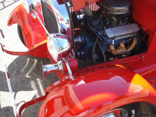 ENGINE 4.1 V-6, TRANSMISSION GM 350TH with column shift(tends to leak a little when parked for longer periods) CHASSIS TCI Frame, 4" drop SuperBell front axle-transverse spring and 9"Ford rear with ladder bar and coil-overs. BODY by Polyform, bodywork by "Magoo", paint by Paul Bonanti, Striping by Sam Mc Farland. Ron Francis wiring. MILEAGE:12928 |