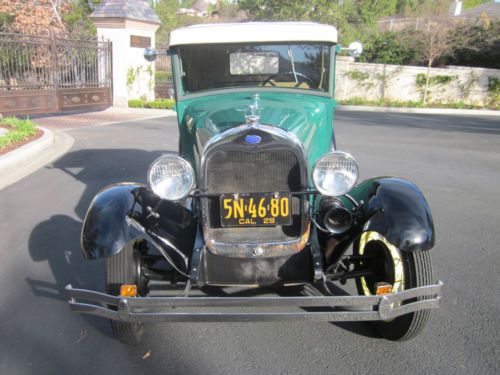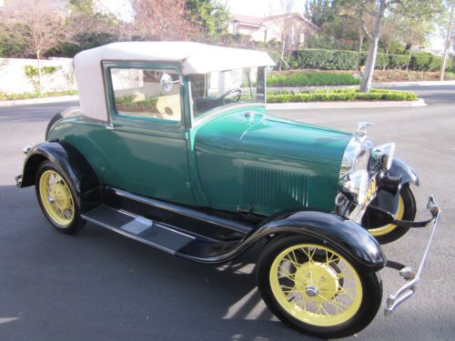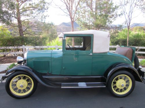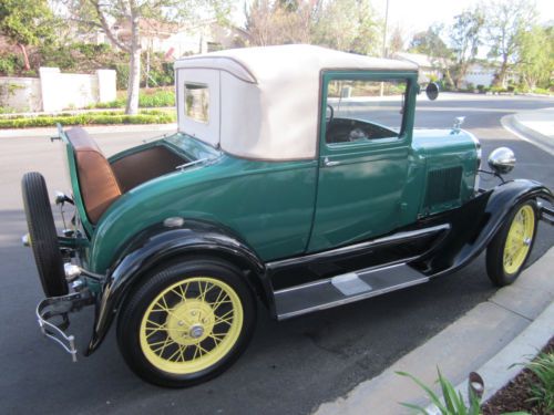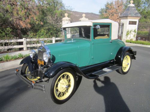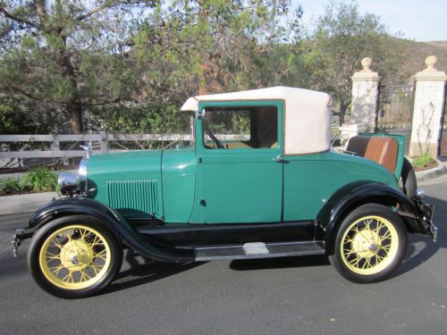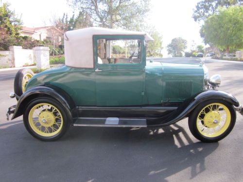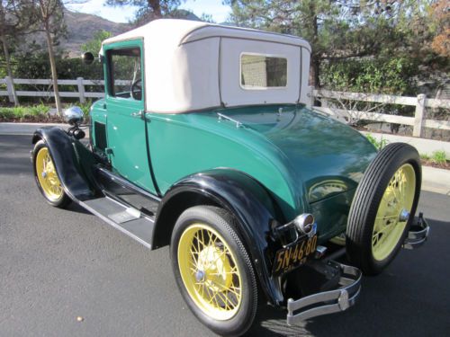 Very rare Sport model with cloth soft top Very nice condition Model A Sport Coupe that has been very well cared for and driven with 102k original miles. It is an older restoration done in the early nineties but has held up very nicely. This car has only had 4 owners and is a very rare model with a cloth soft top. The most recent owner of 20 years bought the car from the president of the southern california model A club (at the time) who did the restoration, so you know it was done right! This car has always been a CA car and has zero rust. - It starts right up and drives and rides like new, needs nothing mechanically - has the original flat head 4 cylinder and 3 speed manual transmission - everything works on the car, needs nothing - original rims in excellent condition, very minor nicks on a couple of them - newer tires including spare - has a very nice rumble seat The paint is still in very nice condition, just look at the pics. All of the chrome on the bumpers and headlights is excellent, the only area that needs to be re-chromed is the radiator cover, please look at the pics for details on that. The interior was restored with all original materials and still looks like new, the only area that needs attention is one of the seams on the headliner has come undone, it is not a tear simply just stitching that has come undone and needs to be restitched. This is a high quality driver that can be used in parades and can win at the local town car show! Please let me know if you have any questions, thanks! Rob 310.995.eight.eight.nine.six |