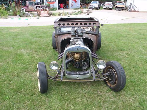 Heres a chance to get you butt into the seat of a pretty bad ass and interesting head turning hot rod, my freind Dylan of the band "Reckless Ones" owns this car and built it years ago, he has had the car for almost 8 years, and has decided its finally time to part with the car, the car had been sitting for a couple years while the band toured and he decided he just couldnt give it the time and love this car needs. The car was built to resemble a 50s altered drag sedan, its a 29 ford model A tudor, it has been chopped 6 inches, channeled about 6. its is on a stock but modified (z'd and boxed) frame, the front end consists of a 33-36 ford axle with 40 ford wishbones, and the axle was modified to accept 1954 chevy spindles and brakes, also on the front are 49-53 chevy rims with coker 560-15 tires. the rear suspension consists of a 66 olds cutlass 8.2 rear end and trailing arm type suspension with coil springs and tube shocks. the transmission is a th350 that has a stall convert and shift kit. now the best part of the whole car, the motor, its a rebiult 283 with forged pistons and a comp cams camshaft, later model 76 cc heas to lower the compression to a tollerable level for the blower, the heads had hardened seats and bronze liners installed also, the motor was bored and competely rebuilt, grank ground, new oil pump timing chain lifters bearings rings, etc etc. the intake is a offy intake modified to accept a 6-71 blower, the blower had been rebuitlt for the street. to top is all off is a vintage and rare wieand 8x2 blower top with 8 holley 94 carbs, the car is running only 4 of the 8 carbs to alleviate some of the trouble! the car was built about 10 years ago and all mechanical asspects were new, kingpins, tie rod ends, brake lines, wheel cylinders, master cylinder etc etc, when origianlly built it had a stock runner 283 but that motor was worn out so the new motor was built 4 or so years ago and doesnt have a huge amount of miles on it. the radiator is located at the rear of this car and is a 70s gm 3 car radiator. it had two nice large electric fans also. im sure im missing some stuff.