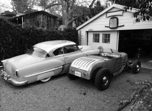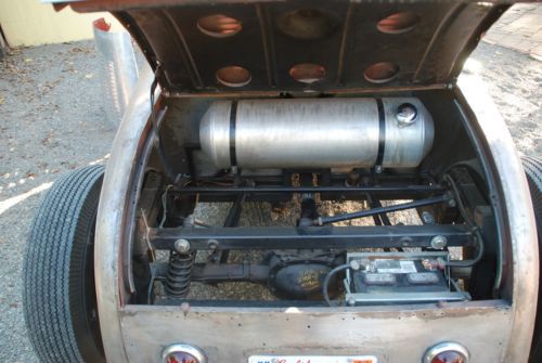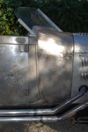 This is a 1929 ford on an original 32 frame. has original dropped 32 I beam front axle, rear cross member is tubular since it now has coil overs in the rear. Has original 32 grille shell, newly fabricated aluminum 3 piece hood and deck lid. The body is bare metal and you can see all the hot rod body mods and lead filler from the 50's. Interior- reproduction WWII aircraft seats, 40 Ford dash shortened and installed in the 50's. Engine-350/350 with single 4brl edelbrock carb. History- I have been told that this car was built in So-Cal and raced on the dry lakes. I was told that It was green with an American flag hood when it raced. As I removed the paint, I found Yellow, Green and White paint. There are several tells the car was a race car and or hot rod back in the day, such as the driver door is arc welded shut, the 40 dash is arc welded in, the passenger door hinges are streamlined, and there is a lot of lead filler on the body. also there are 2 small patch panels behind the seats where there used to be a roll bar, and I was told by several old timers that what appears to be an old aviation style gas cap on the pass side rear 1/4, is most likely a filler cap for a water ballast for high speed runs I.E Dry lakes / Bonneville. The car currently has a Steve Sellers Hallock windshield and ill sell it with track tires in the front, or standard biasply tires. This car is Fast Loud and a Ton of Fun. Get it in time for summer. |