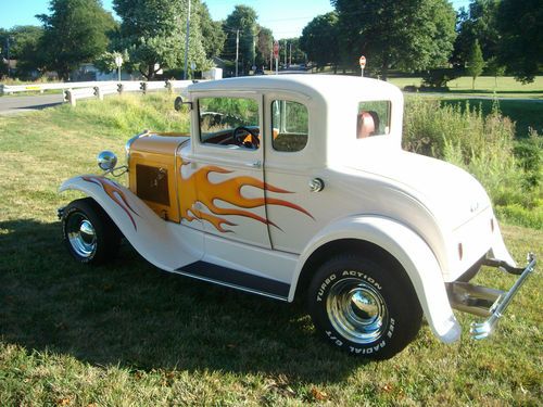 1930 30 Ford Model A Coupe Street Rod Show Car Hot Rod Pearl White Flames Hotrod on 2040-cars