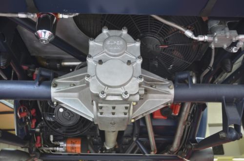 The engine is a 276 Cubic inch Ford flathead built by Howard Allen with S.C.O.T blower and Ardun Overhead built by Don Ferguson. Hunt electronic ignition. Custom made headers. Oil cooled radiator. Two rebuilt 2-Jet Rochester carburetors. (This is basically the same engine (his has more bottom end strengthening, higher compression, fuel, etc) that Don Ferguson runs in his Bonneville car that exceeds 300 MPH. It is coupled to a T-5 Five speed transmission, aluminum drive shaft to a Speedway Engineering quick change rear end. Brakes are Wilwood discs front and rear with bias control. Wheels are aluminum knock-offs shod with 7:50 X 18 Dunlop racing tires in the rear and 6:00 X16 Excelsior racing tires in the front. It includes a spare set of six aluminum knock-offs shod with Toyo road racing tires. Dropped tube front axle. The chassis is the size and shape of a '32 Ford but made entirely of chrome molly tubing. Suspension is torsion bar front and rear with adjustable (both up and down) high performance shocks. The front has an anti-sway bar. The body is a 1930 Brookville body and bed modified. Please note the cowl, windshield, dash board modifications and the bed has been widened. The grill shell is Whippet, with the huge radiator in the rear bed with a high performance fan. Runs cool -- necessary for Mexico! The grill mascot is a 1030's European (Brunswilk) bronze monkey. The fuel tank is custom made Fuel Safe with racing bladder. The gauges are early Stewart Warner with copper plated bezels. All of the instruments work and were rebuilt by North Hollywood Speedometer. The three stem switches custom made are for the horn, blinkers and lights. Ignition, starter button and fan switch are under/behind the custom dash. The steering is Schroeder, with a quick release wheel. Interior is old canvas and leather (rough side out). The body is painted air force blue and distressed. This is a very quick car and those of you who have not driven a high performance flathead with blower and Ardun overheads will be quite surprised at its torque and horsepower. The parts alone are worth more than the starting bid. Selling to make room for new acquisition. Good luck bidding. I have additional photos if you are interested. |