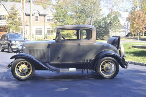 1930 Model A Ford Coupe in nice shape. The 4 cylinder flat head engine runs good, the transmission shifts smoothly, the clutch is good. This was an frame off restoration. All metal except for 2 rear fenders. Rumble seat. This is a good looking Model A. Fun to drive and enjoy. I have 2 boxes of extra parts  |
